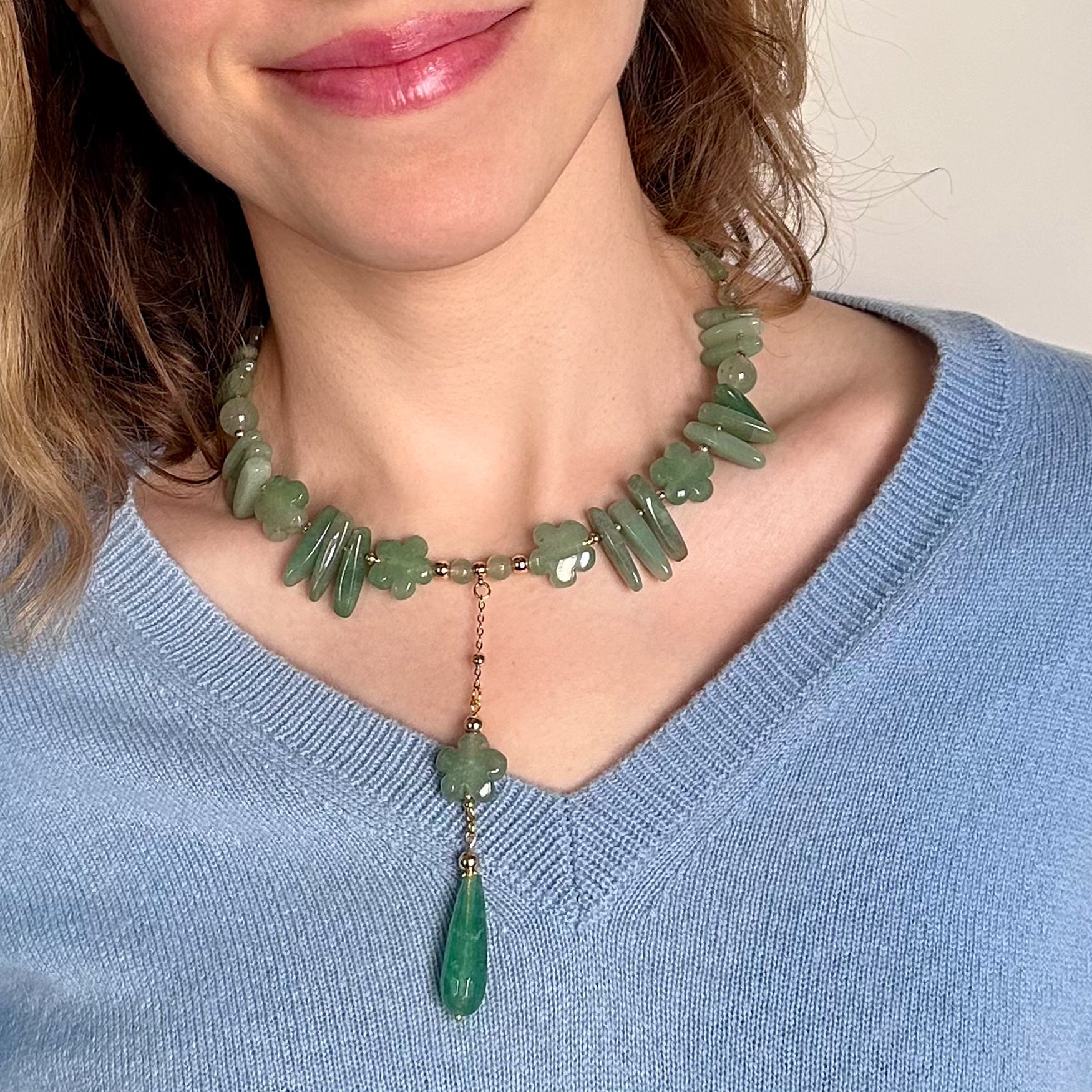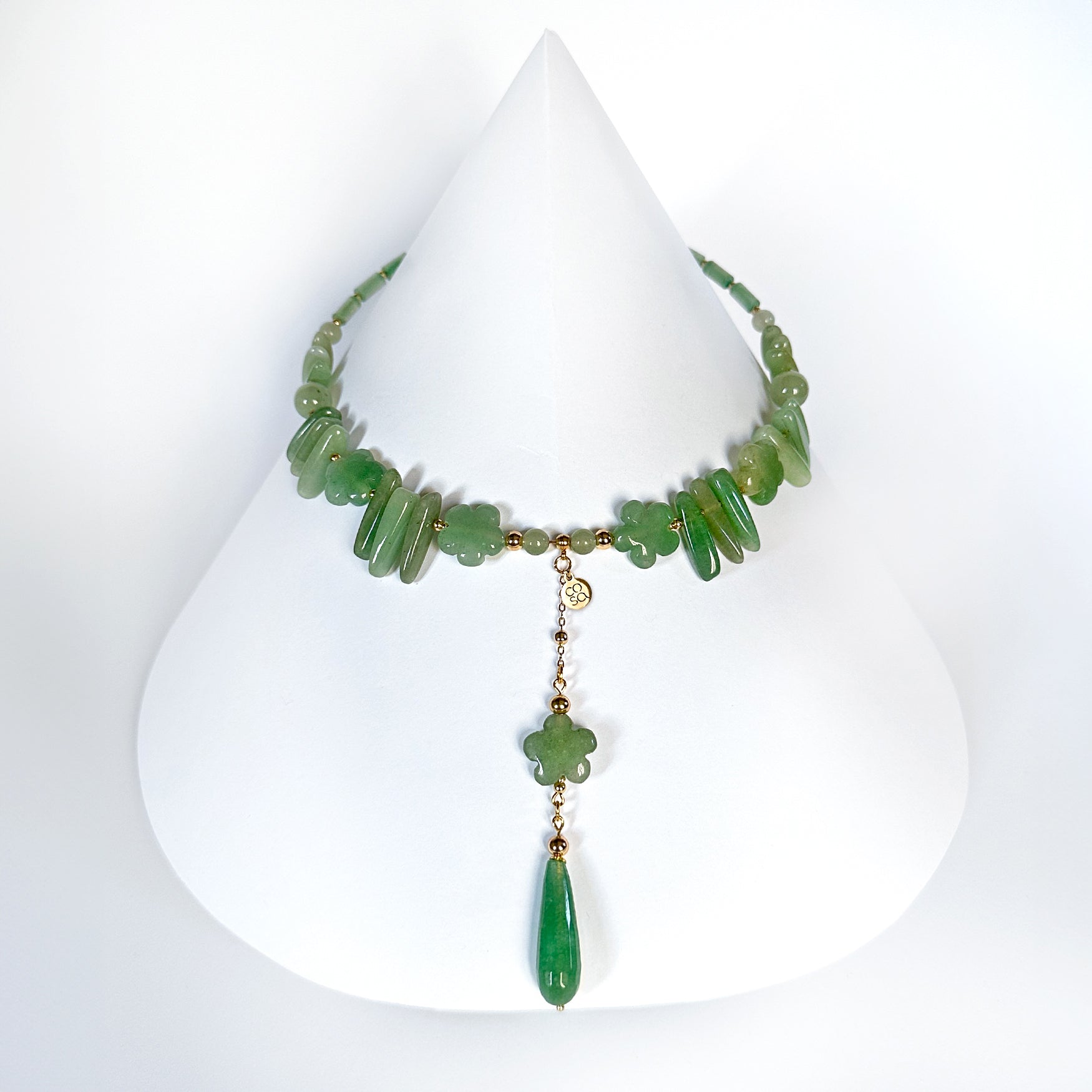 Collana dal design artigianale, realizzata a mano con Avventurine. Ogni pezzo è impreziosito da gemme dalle forme irregolari, che rendono ogni creazione unica e originale — un accessorio senza tempo che celebra la tua individualità. Quantità limitata.