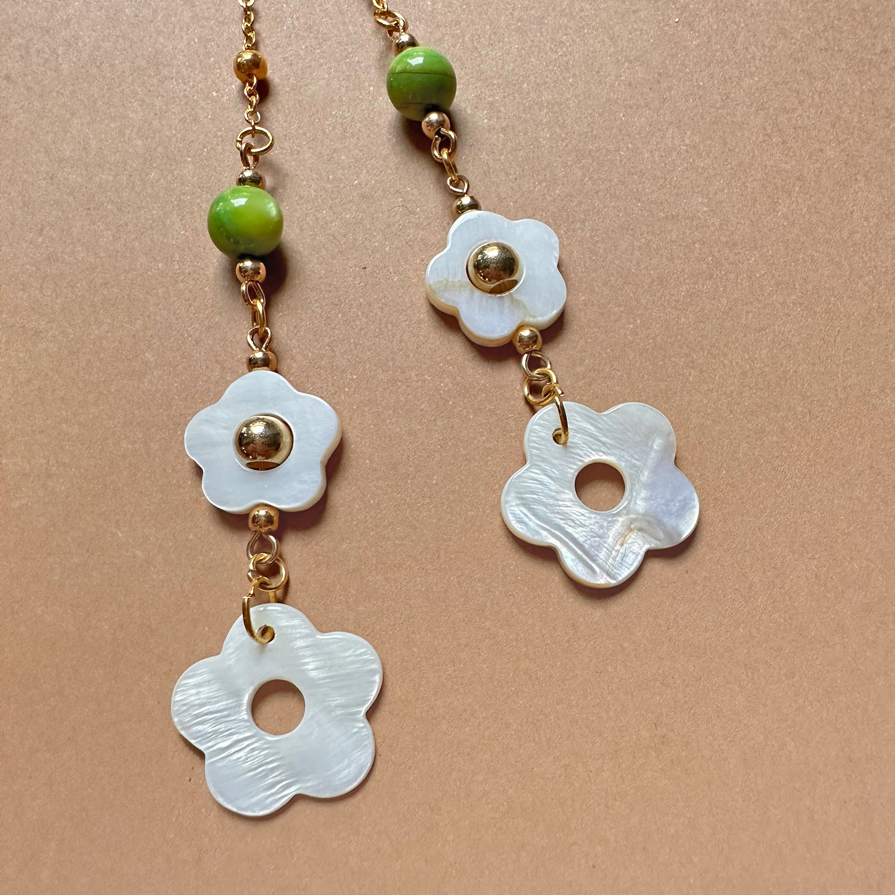 Collana dal design artigianale, realizzata a mano con madreperla. Ogni pezzo è impreziosito da gemme dalle forme irregolari, che rendono ogni creazione unica e originale — un accessorio senza tempo che celebra la tua individualità. Quantità limitata.