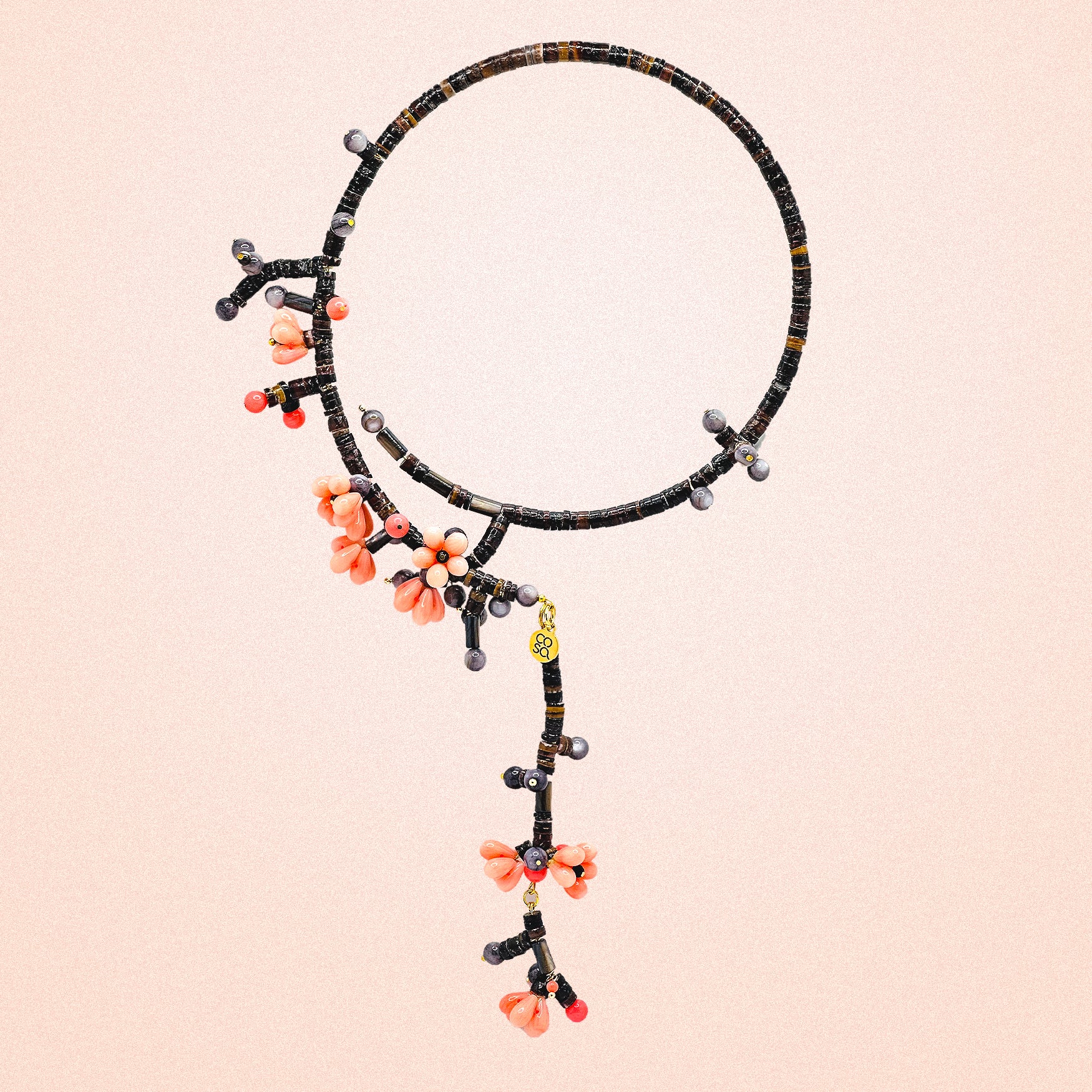 Collana dal design artigianale, realizzata a mano con coralli. Ogni pezzo è impreziosito da gemme dalle forme irregolari, che rendono ogni creazione unica e originale — un accessorio senza tempo che celebra la tua individualità. Quantità limitata.